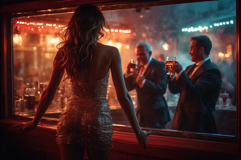 This scene unfolds inside a parked car in the middle of the day, bathed in warm sunlight that filters through the windows in shifting patterns. At its center is Nina—a striking young woman with long, silky dark hair cascading down her back—radiating a calm, self‑assured presence in the bright, open light. She’s dressed in a simple black top and fitted shorts, an outfit that highlights her relaxed confidence without revealing anything inappropriate.